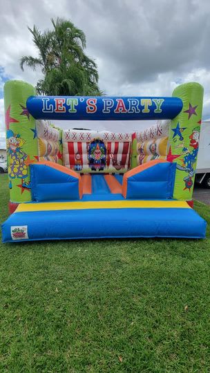 Jump around with all your friends and act like a clown on our Clown themed bouncy castle!