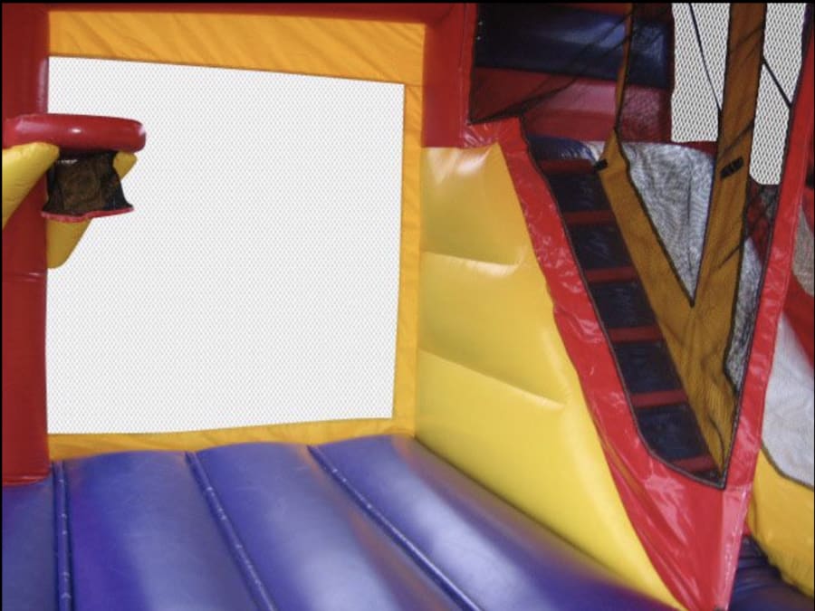 Climb n slide. Water hose connects to the top of the slide. Mesh walls to let the breezes through, keeping the kids cool.
