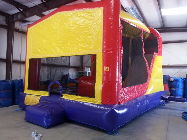 Climb n slide. Water hose connects to the top of the slide. Mesh walls to let the breezes through, keeping the kids cool.