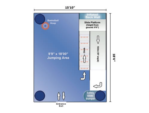 Climb n slide. Water hose connects to the top of the slide. Mesh walls to let the breezes through, keeping the kids cool.