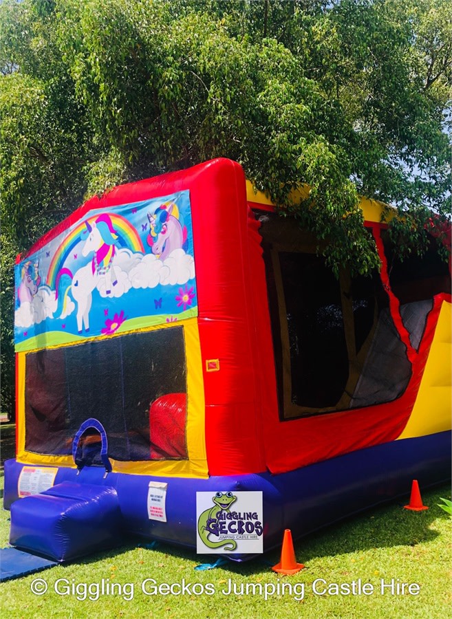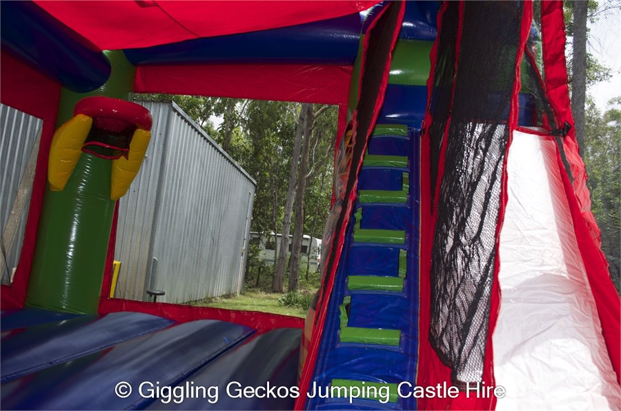 Let their imagination go. Plenty of room for the kids to jump and play with the basketball hoop. check out the awesome climb n slide. Water can connect to the top of the slide, making for extra cool fun. This castle is packed with so much entertainment