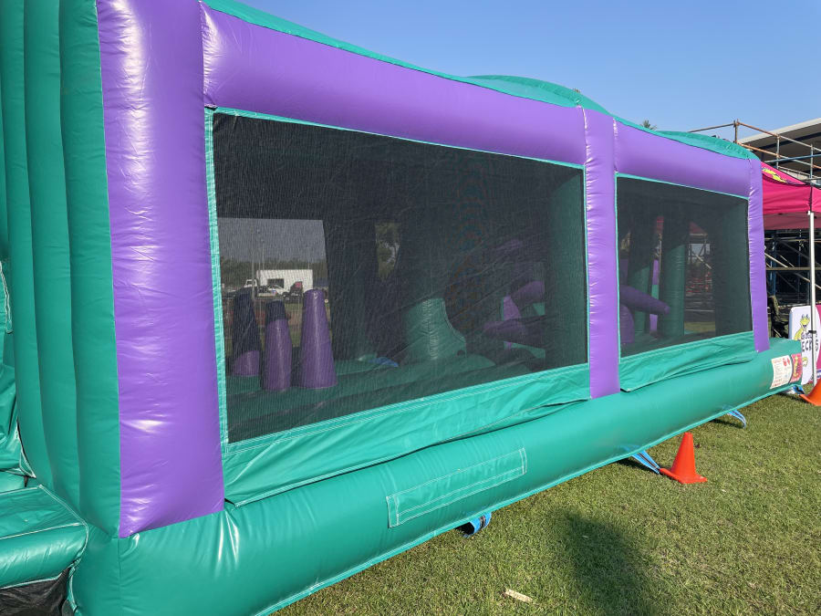 Perfect Obstacle Couse when space is an issue. It has pop-ups and a slide on the inside with a 180* degree turn to pop right back out at the start again. Kids are going to love it, and run though again and again.