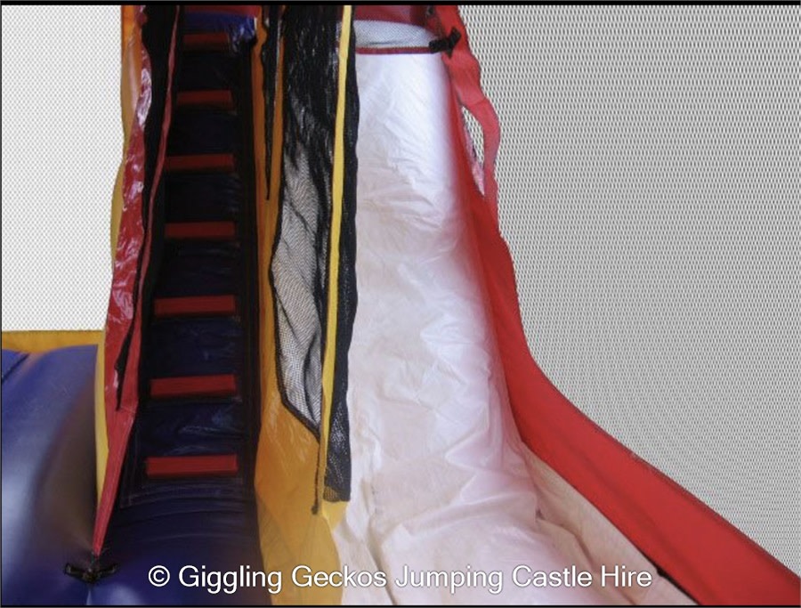 Climb n slide. Water hose connects to the top of the slide. Mesh walls to let the breezes through, keeping the kids cool.